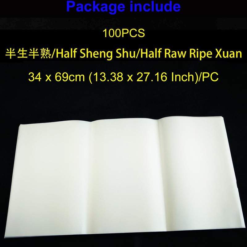 - PRODUCT DETAILS: It include 100 sheets 34 x 69 cm (13.4 x 27.2 inch) half sheng shu (half raw ripe) xuan papers, sufficient quantity for you to practice Chinese calligraphy, perfect for Chinese calligraphy beginners and lovers