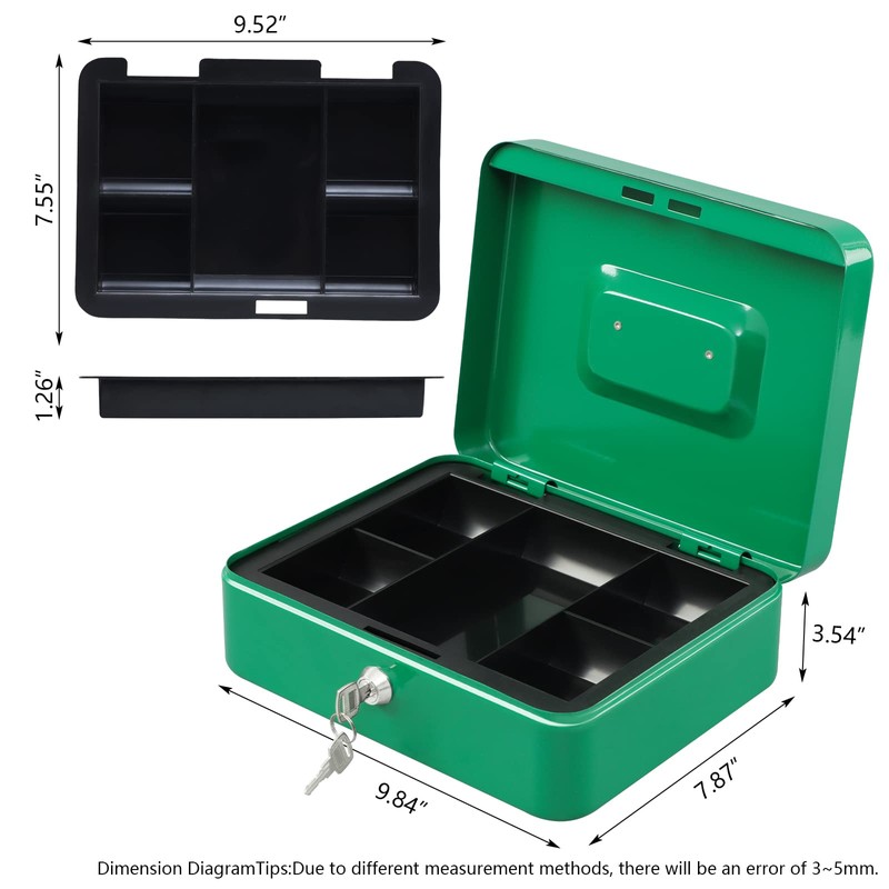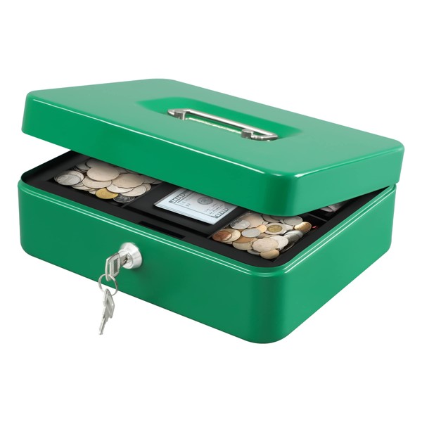 KYODOLED Large Lock Box with Money Tray,Storage Cash Box with Lock,Safe Metal Box for Money,9.84"x 7.87"x 3.54" Green Large