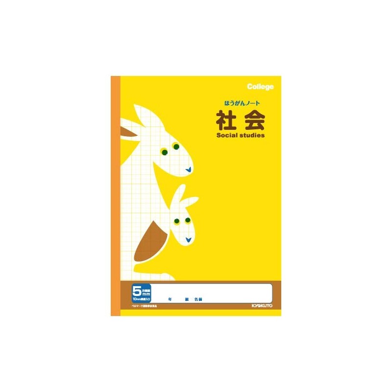 Kyokuto LP40 College Animal Learning Book, Subject Names Squad Notebook, Society, 0.2 inch (5 mm) Square Ruled, Set of 2