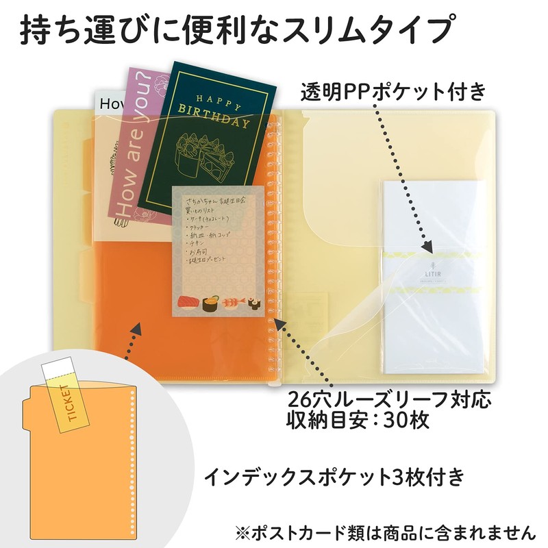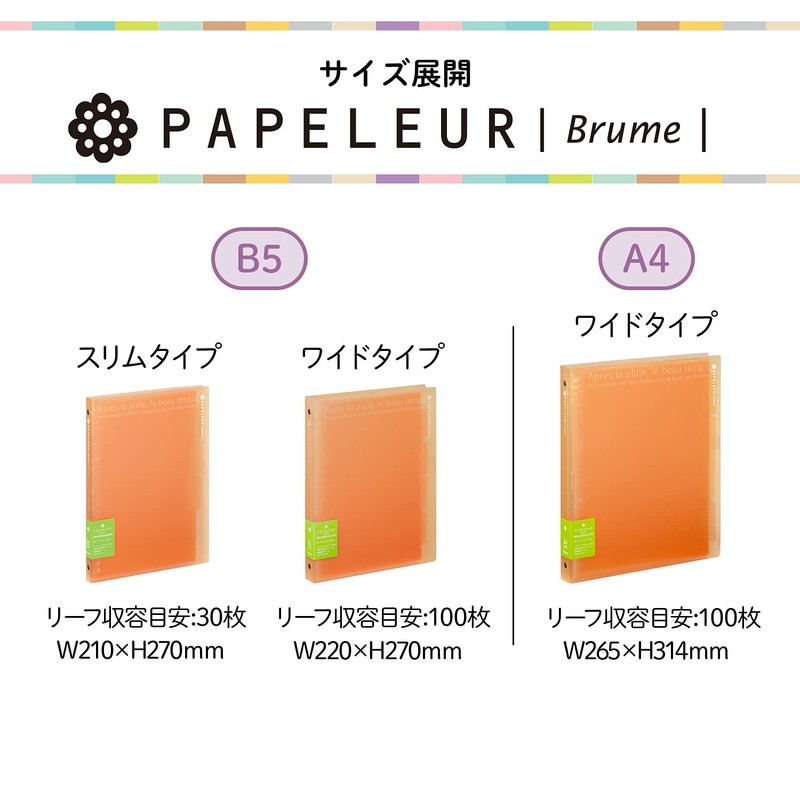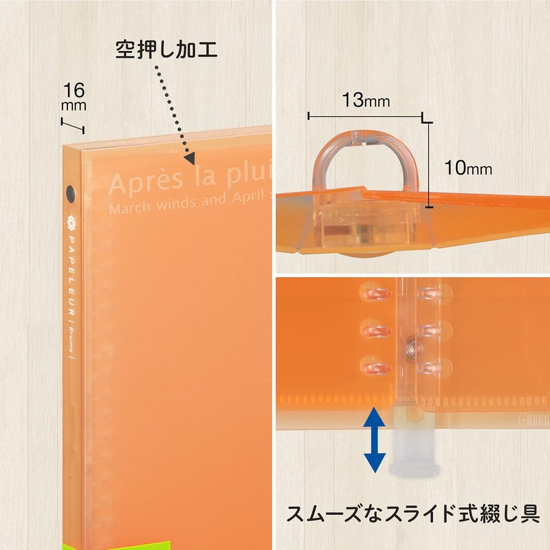 Kyokuto Papeleur Brume LN223OR Binder, B5, 26 Holes, Slim, Orange