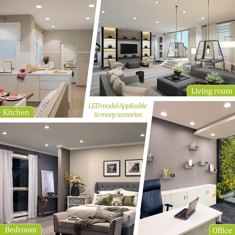 - Ultra flat design: the LED module is extremely flat with a height of only 23 mm. This low height allows installation in small space and is the optimal solution in suspended ceilings. Best suited for replacing conventional GU10 and MR16 halogen bulbs e.g. recessed lights, ceiling spotlights, recessed spotlights, ceiling lights, spotlights.