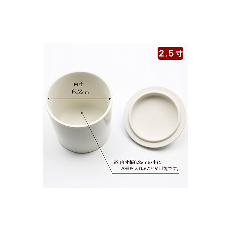 - Material: Made of ceramic. Outer dimensions of the urn: Diameter 3.2 inches (82 mm), Height 3.5 inches (90 mm). Storage bag size: Width 4.5 inches (113 mm), Height 6.8 inches (172 mm). Country of Origin: Japan
