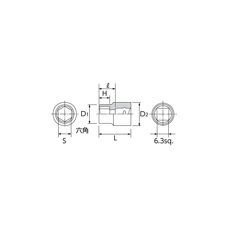 Kyoto Machine Tools (KTC) 6.3sq. Socket (Hexagonal) 0.3 inch (7 mm) B2-07