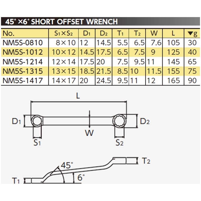 Kyoto Machine Tools (KTC) NM5S-1012 Neplos 45 Degree Short Glasses Wrench
