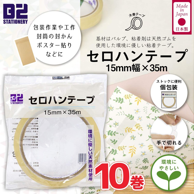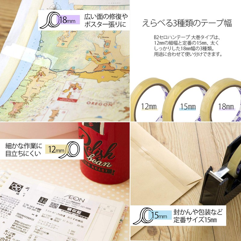 Kyowa B2-T1535_10 Cellophane Tape, Large Rolls, 10 Rolls, 0.6 inch (15 mm) Width x 128.4 ft (35 m) Roll,