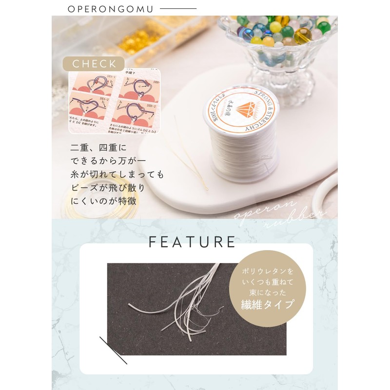Kyozudou Crystal Line Operon Rubber White Approx. 50-60m/0.8mm (1 piece)