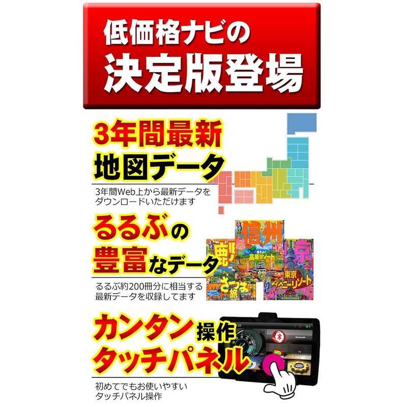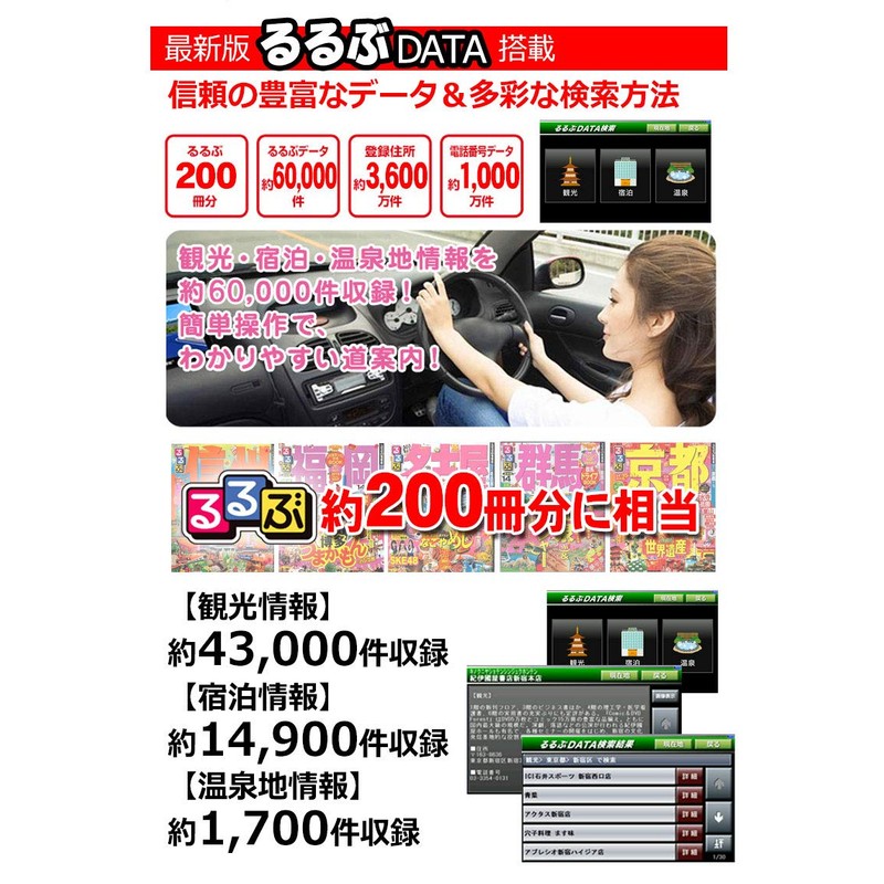 - Equipped with the latest map data, 3 years free map updates, equipped with Rurubu DATA and a wide variety of information and a variety of searching methods