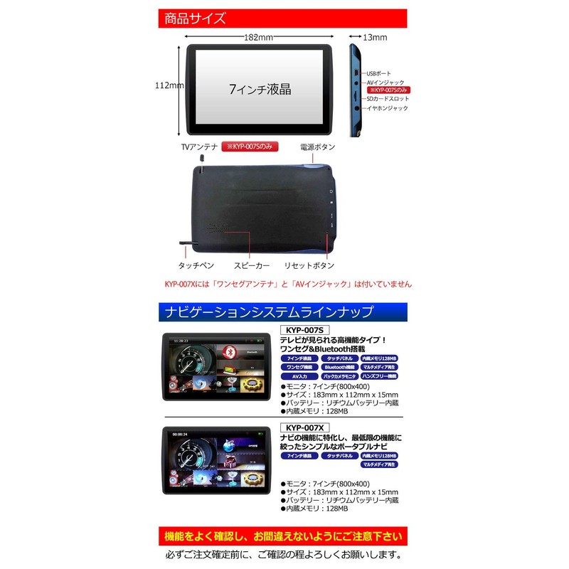 - Supports 3 power supplies. Not only can it be powered by a USB power source, but it can also be carried with the built-in battery. This KYP007X is a one-seg-free model. Please do not make mistakes