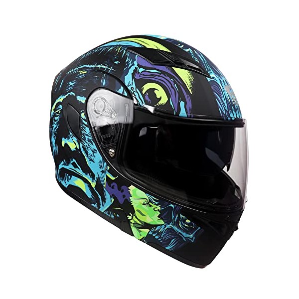 KYPARA Motorcycle Dual Visor Flip up Modular Full Face Helmet with DOT Certification of Impressionism (Frankenstein, M)