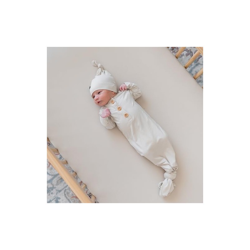 KYTE BABY Knotted Gown with Hat Set in Oat