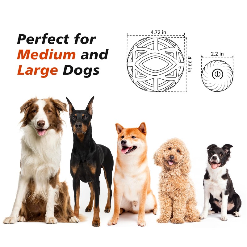 - 【2 Selectable Modes】:Switch between Normal Mode (Green Light) and Smart 24-Hour Mode (Blue Light) with a long press. In Normal Mode, the ball moves for 5 minutes and stops automatically. In Smart Mode, it sleeps after 5 minutes but reactivates when touched by your dog—perfect for interactive all-day play.