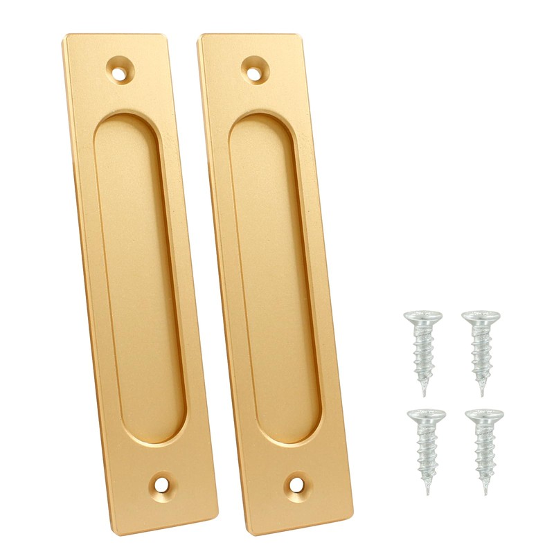 Kyuionty 2Pcs 7 Inch Flush Pull, Rectangular Finger Flush Pulls Recessed Barn Door Handle Sliding Door Handles for Pocket Door, Gates, Garages, Sheds (Matte Gold)