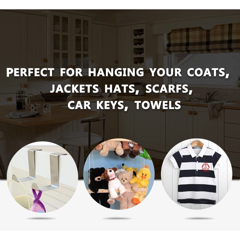 - Wide Application: The over the door hook is widely applied to living room, bathroom, bedroom, kitchen, office, door, cabinet and drawer. Make the most of the space behind the door for hanging and organizing backpacks, coats, umbrellas, purses, belts, towels, bathrobes etc.