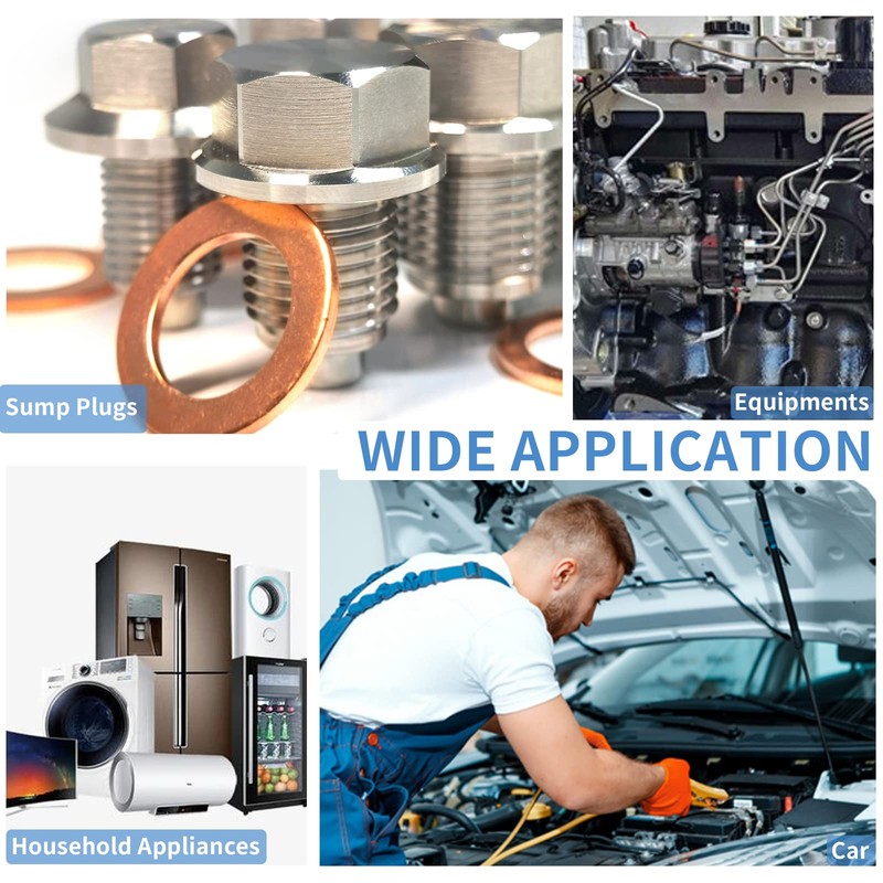 - Wide Application: The flat copper flat seal gasket is suitable for sump plugs, fuel, oil lines, hydraulic accessories, household and commercial Appliances, automotive and marine, etc. Bringing a lot of convenience to your daily life and work.