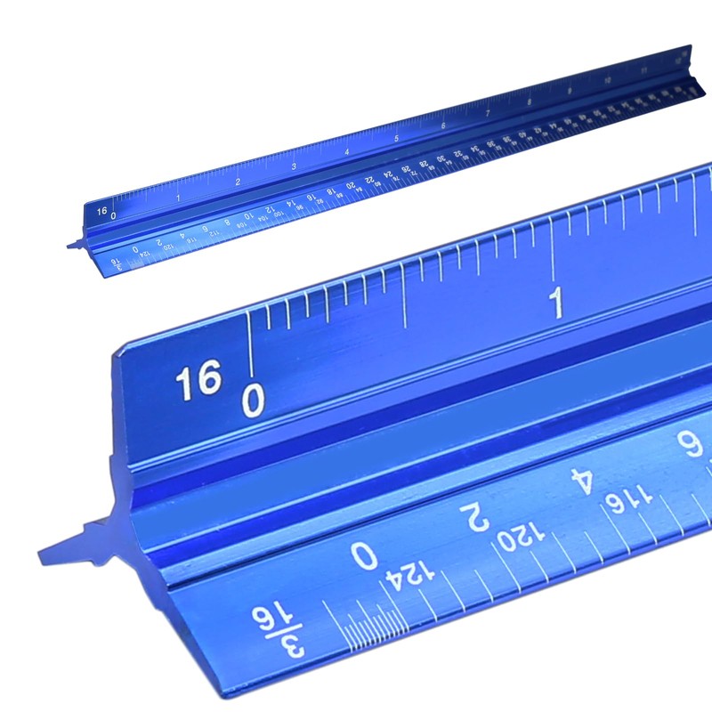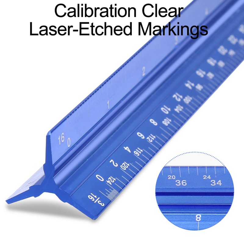 Kyuionty Architectural Scale Ruler 12 Inch, Imperial Scale Aluminum Laser-Etched Triangular Engineer Scale Ruler Civil Drafting Tool (Blue)