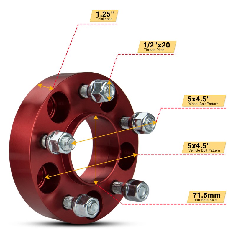 KYX 2x 1.25" 5x4.5 Hubcentric Wheel Spacers 1/2"x20 For Jeep Comanche 1986-1992