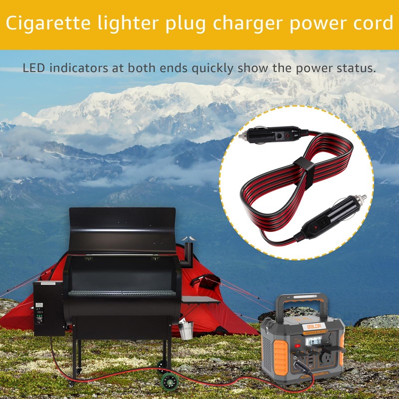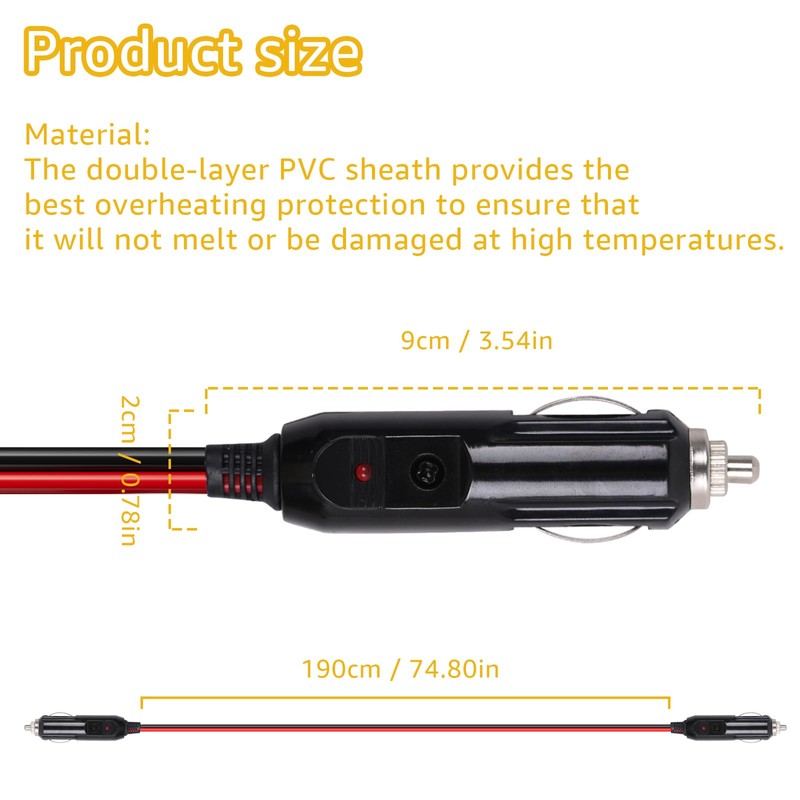 - Product specifications: 2x16AWG black red power cords, wire length 6.56FT/2 meters, cigarette lighter with LED indicator light. Very convenient to use, suitable for replacing barbecue power cords