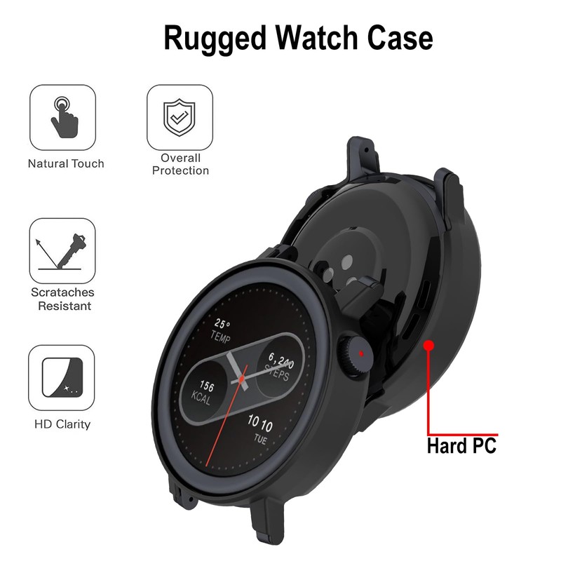 - PC Material Design:PC material case, covers the full front and curved edges of the watch.protects your device from falls, bumps, dust and accidental scratches from higher edges for screen protection.