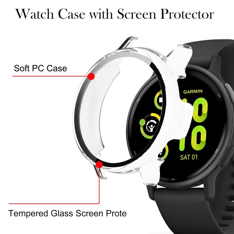 - Compatibility Fit:case with screen protector that conforms to any rounded curvatures and provide complete Garmin Vivoactive 5 coverage.You will feel nothing on your Watch. But it did keep the Protection of your watchand give you the excellent grip.Precise hole cutouts make it easy access to all buttons and sensors.Easy access to all functions without having to remove the watch.
