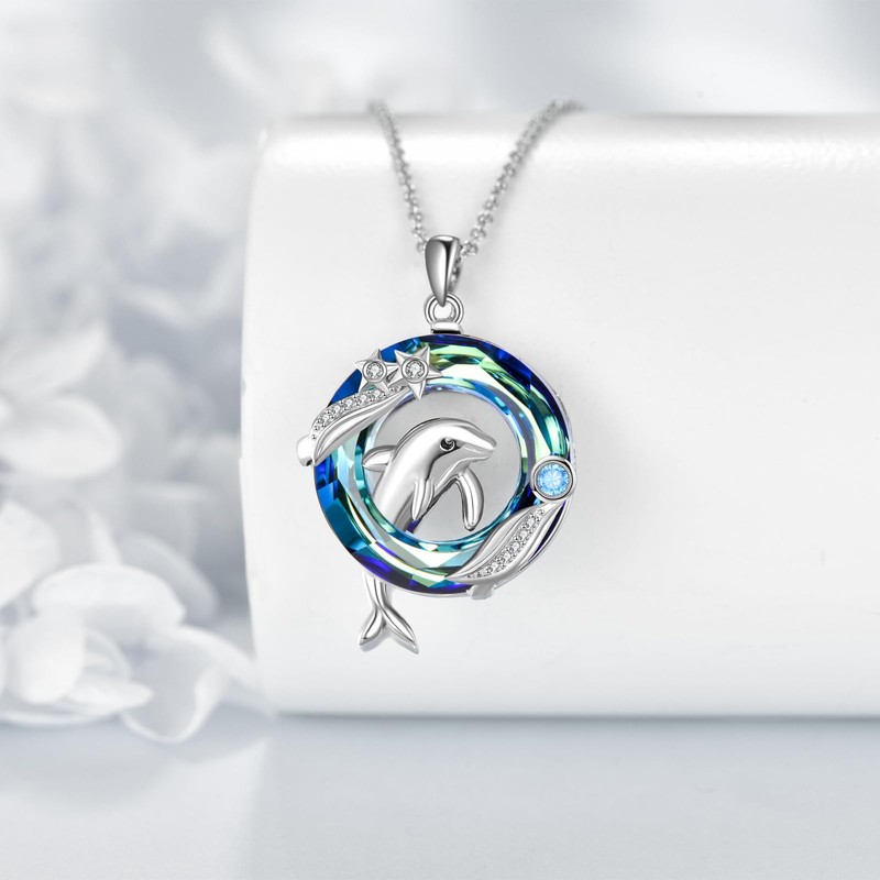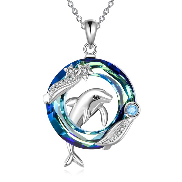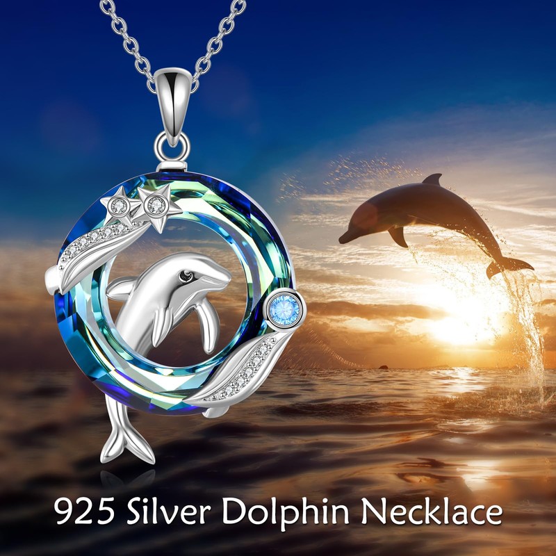 KZX Dolphin Crystal Necklace for Women 925 Sterling Silver Dolphin Pendant Gifts for Women Mother Ocean Jewelry for Mom Mother's Day Gifts