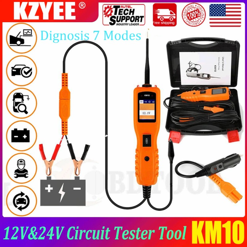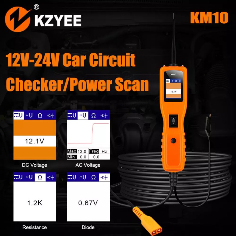 The KZYEE KM10 Power Scan Kit is the most revolutionary circuit tester yet, operating at 12-24 volts. With voltmeter, test light, built-in flashlight, short circuit indicator, relay/component tester, continuity tester and ground fault indicator, the Power Scan is indeed the ultimate in performance and affordability, allowing users to check circuits in a single step.