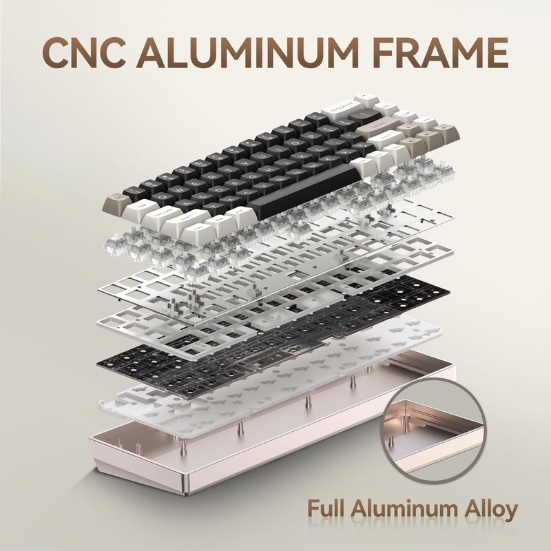 - CNC Aluminum Gaming Keyboard : Fully crafted with an aluminum body, theG68 gaming keyboard is robust and durable beyond standard plastic keyboards. Cut via CNC and electrostatic powder coated, the metallic case of G68 brings the keyboard’s overall feel and aesthetic to the next level. With greater durability and eye-catching colors, it is perfect for gaming enthusiasts and professionals alike.