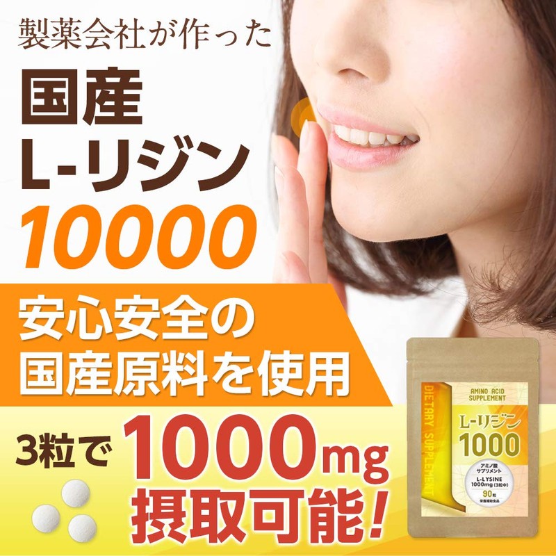 リジン サプリメント 国産 L-リジン 1000 サプリ(GMP国内工場製造) 30日分×1000mg