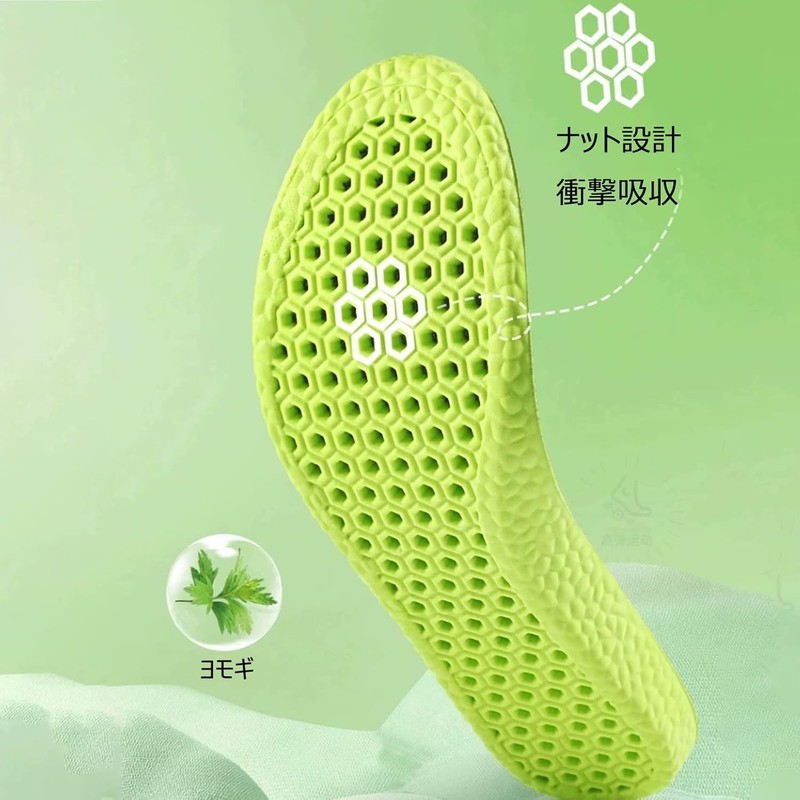 インソール 足臭い対策、足の消臭、通気性、防臭、吸汗性、衝撃吸収、柔らかい、ソフト、汗吸収、中敷き、靴底、立ち仕事用、疲れない靴、レディース、メンズ、スポーツ、バスケ用、男女兼用 (ブラック/グリーン, L(26.5-27cm)) オリジナルポケットティッシュ付き