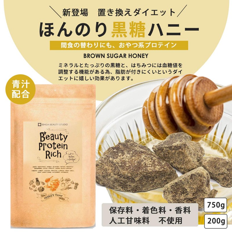 [ビューティ プロテイン リッチ]ソイプロテイン おきかえダイエット シェイク L-カルニチン αリポ酸 青汁【黒糖ハニー味】750g(1食25g 97kcal)