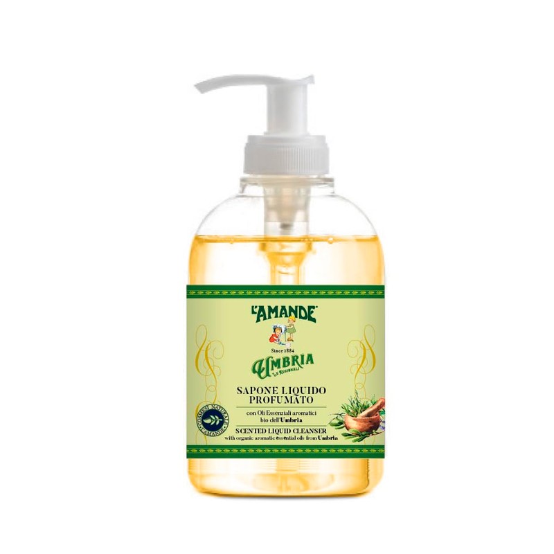 L'AMANDE - Liquid soap for hands and body, concentrated, nourishing and gentle cleansing gel with aromatic and cleansing essential oils from the biological umbrie, natural hand and