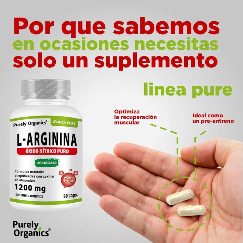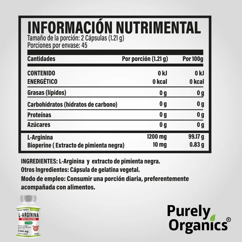 L Arginina Pure, Vegana, 90 Cápsulas. Purely Organics. Sabor Sin sabor