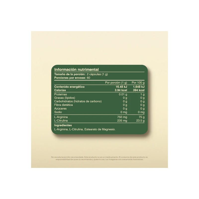 • ✔️ Fórmula de L-Arginina + L-Citrulina en cápsulas de fácil absorción.
