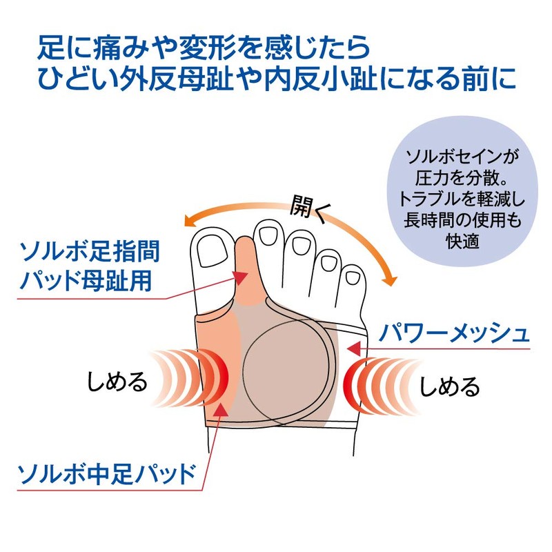 ソルボ外反母趾サポーター固定薄型メッシュタイプ 左L