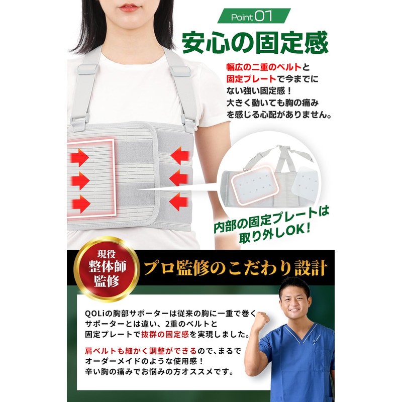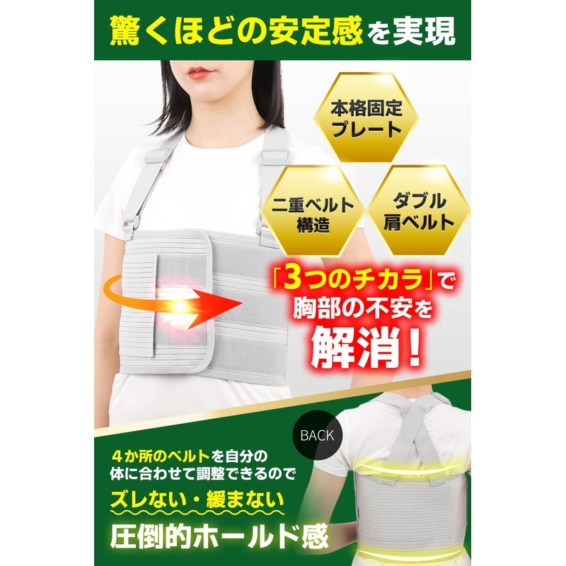 • 【①ダブルベルト構造】二重構造で胸部を固定でき安定感を持って生活できます。