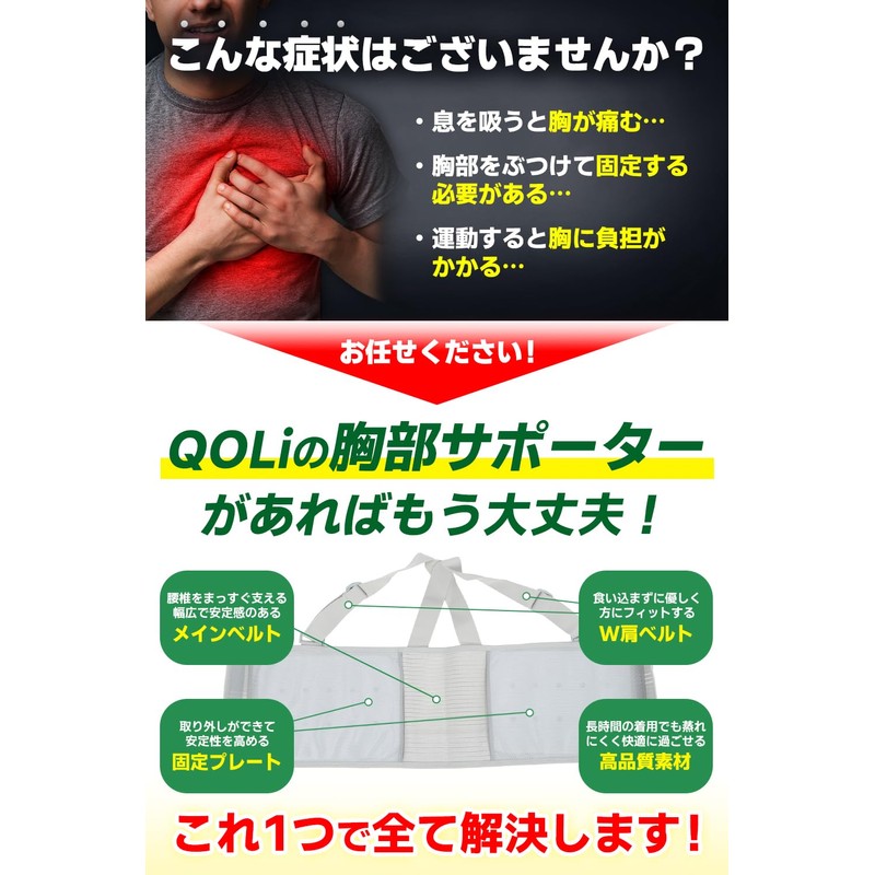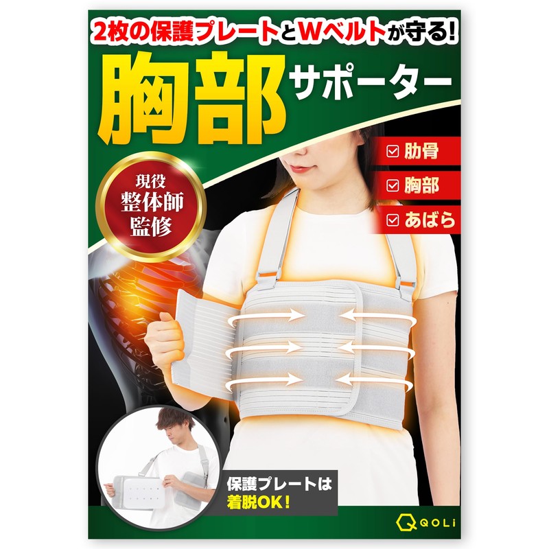 【保護プレート付き 胸部サポーター調節式】現役整体師や胸部に悩みを抱える方々に聞き取りを実施し、様々な状況を想定して商品開発をいたしました。ランニング、ウォーキング、ハイキング、登山、サッカー、バスケ、サイクリング、テニス等やこれ以外の運動やアクティビティーにも適しております。どうか一度お試しいただき、機能を実感していただければ幸いでございます。