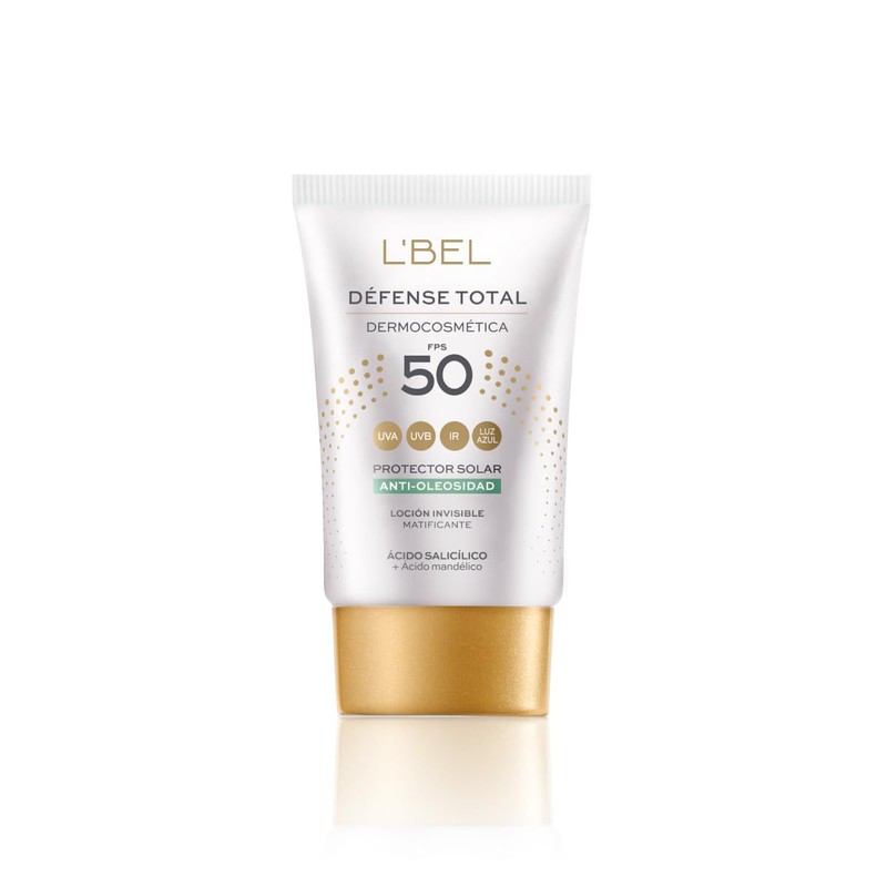 L'BEL - Défense Total Protector Solar Antioleosidad 30ml, Reduce Oleosidad, Protección 50FPS, para Todo Tipo de Piel, Uso Diario, con Ácido Salicílico y Ácido Mandélico, Efecto Mate con Duración 24h