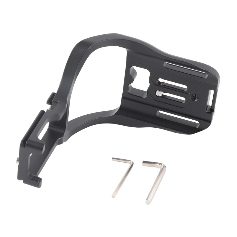 1、Aluminum alloy material, anodized surface treatment, sturdy and durable, with 1/4in screw on the bottom. 2、Both the base and the side have for ARCA‑SWSS quick‑release ports to support fast horizontal and vertical shooting. 3、Customized according to the appearance of the camera, adding the handle position and quick installation function. 4、After installation, it does not affect the opening of the side data port and the bottom battery case door, and does not affect the screen flip. 5、Easy and simple to install and disassemble. Suitable for Nikon D810, D800, D800E camera.