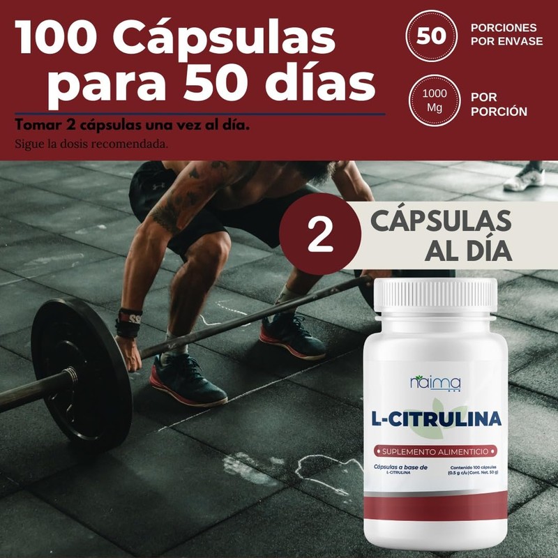L- Citrulina 100 cápsulas - 1000mg por porción- Ingredientes Naturales - L-Citrulline