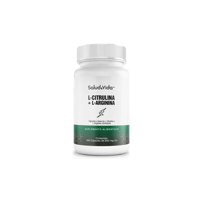 L-Citrulina con Arginina 475mg / 475mg por porción (2 cápsulas) 100 Cápsulas - S&V - Sin Gluten, Sin OMG