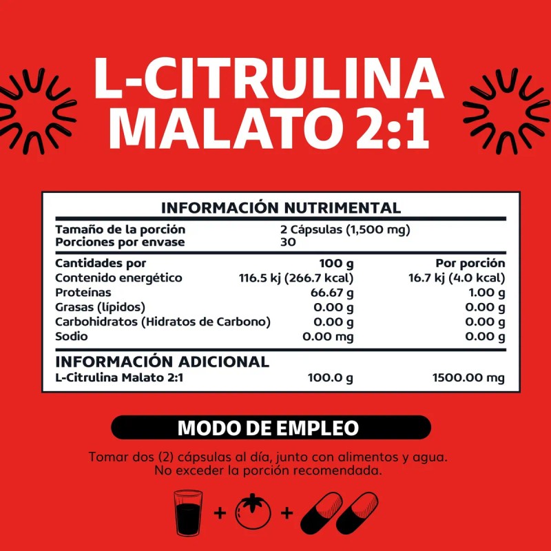 - Citrulina Malato 2:1 es increíblemente fácil de integrar en tu día a día. Puedes tomarla antes o después de tus actividades, adaptándose perfectamente a tu estilo de vida. RESPALDO CIENTÍFICO Y GARANTÍA DE CALIDAD: Nuestra fórmula está elaborada con los más altos estándares de calidad y respaldada por estudios científicos para ofrecerte un suplemento confiable y efectivo. Además, su pureza y precisión en la dosificación garantizan resultados consistentes en cada cápsula. IDEAL PARA QUIENES BUSCAN: