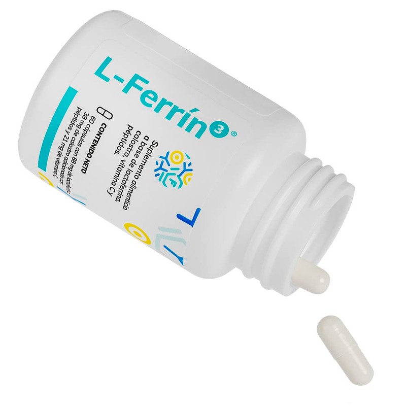 L-Ferrin 3, suplemento alimenticio a base de lactoferrina 88mg, calostro, vitamina C y péptidos, 60cápsulas