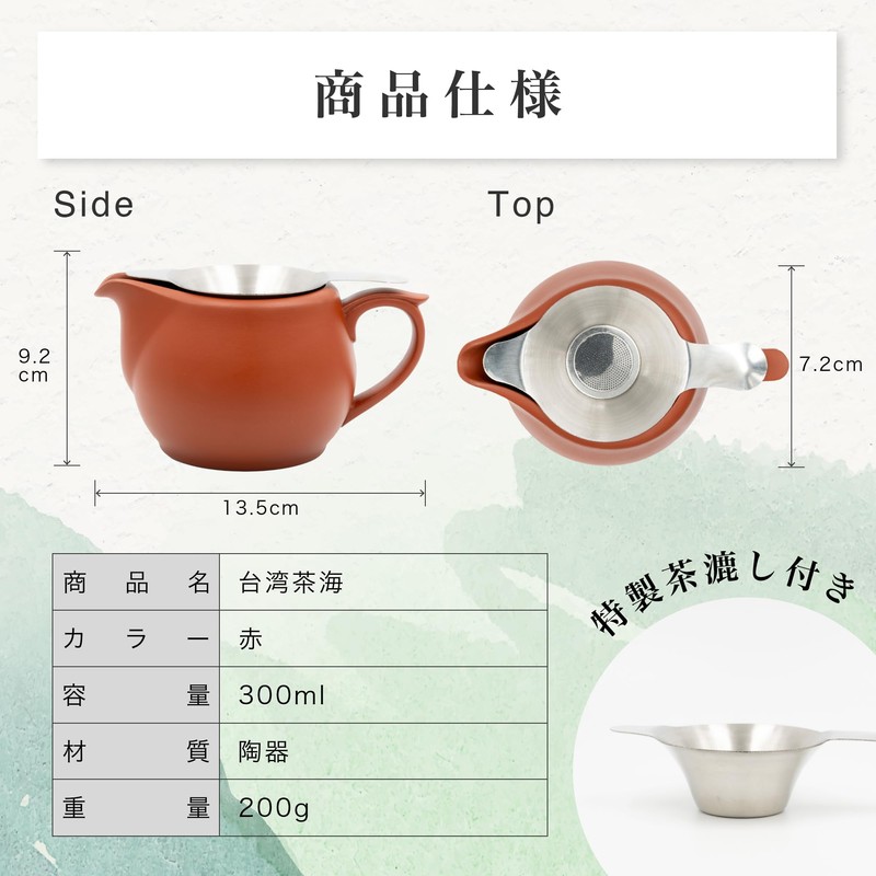 • Made of Taiwan clay, breathable and suitable for all kinds of tea. Green tea, Oolong, Pual tea, Tea etc