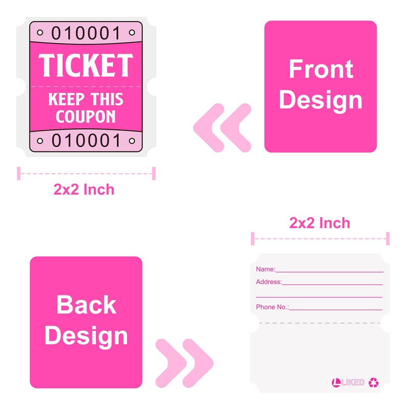 Product Size:2 x2 inches double raffle tickets