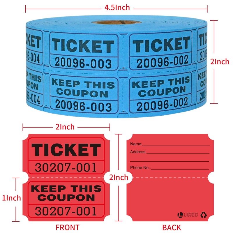 - 1,000 tickets per roll, total 2000 tickets. consecutively numbered(Blue,Red)