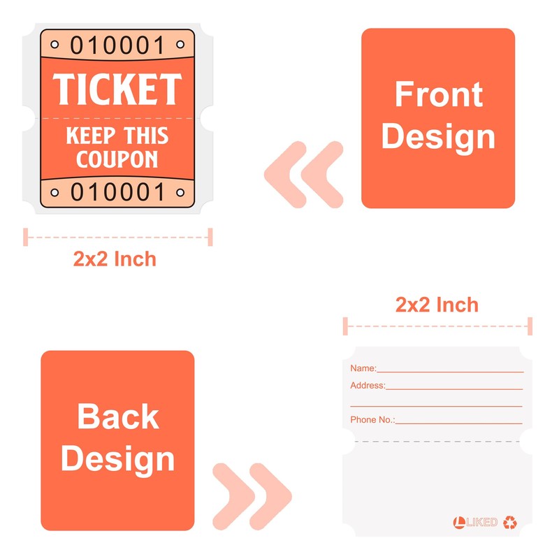 - Large consecutive number tickets with perforated line,easy to read and tear off