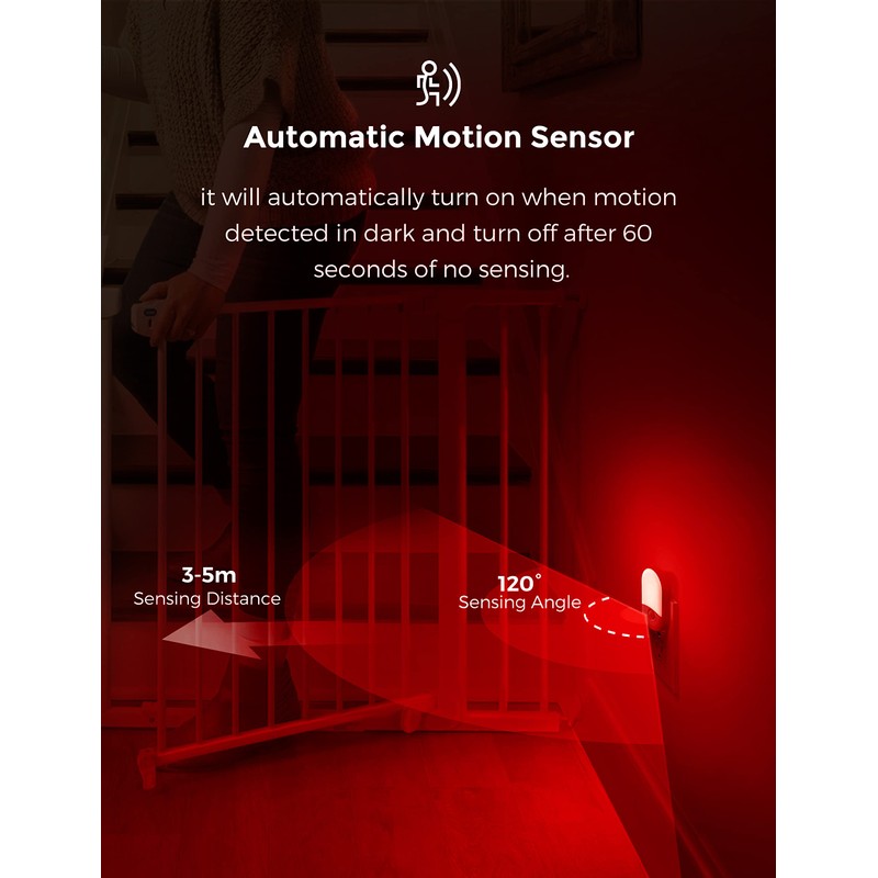 - 【3 Lighting Modes】: The red night light has a built-in motion sensor and 3 lighting modes. "On" mode - always on at night; "Off" mode - turns off the light; "Auto" mode - automatically turns on when motion is detected within the sensing range ( Max: 3-5M, 120°) automatically turns on when motion is detected and turns off after 60 seconds of inactivity.