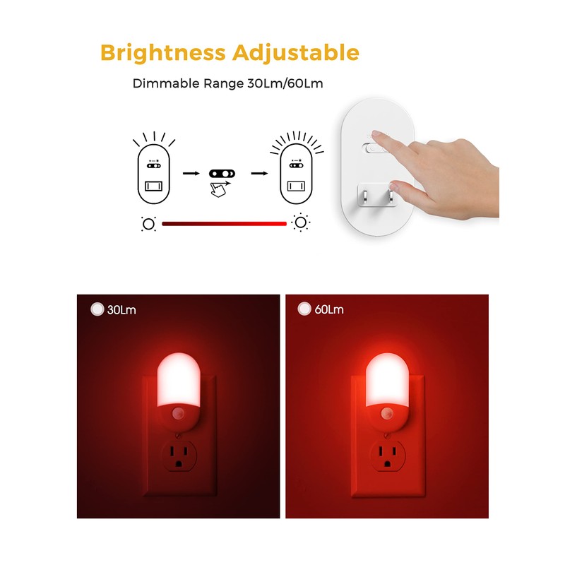 - 【30/60LM Brightness Adjustable】: The dimmable red night light has a brightness slider button that you can move and set the ideal brightness to make your night light emit the darkness or brightness you want.