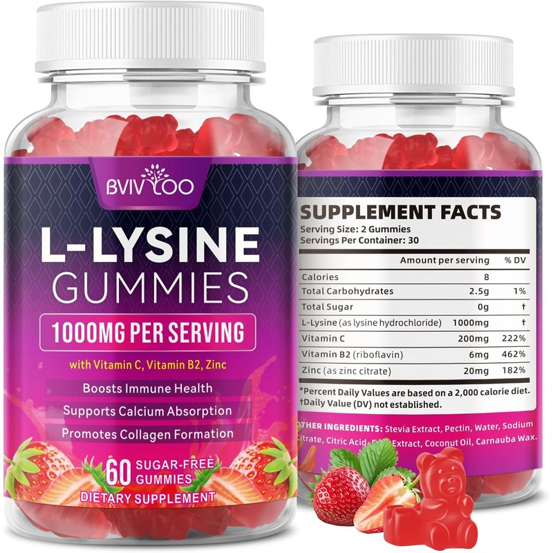 Powerful Immune & Skin Support – Each gummy delivers 1000mg of pure L-Lysine, an essential amino acid that supports immune function, collagen production, and healthy skin and lips.
