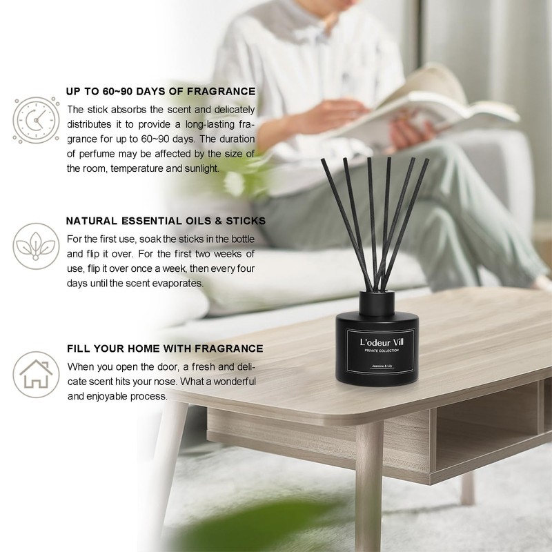 - 【The Perfect Gift】 It will be packaged in an exquisite matte black gift box, which is the perfect gift for friends, family and lovers. It is a necessity for birthday parties, housewarming and family gatherings. They can think of you every day when they use reed diffuser.