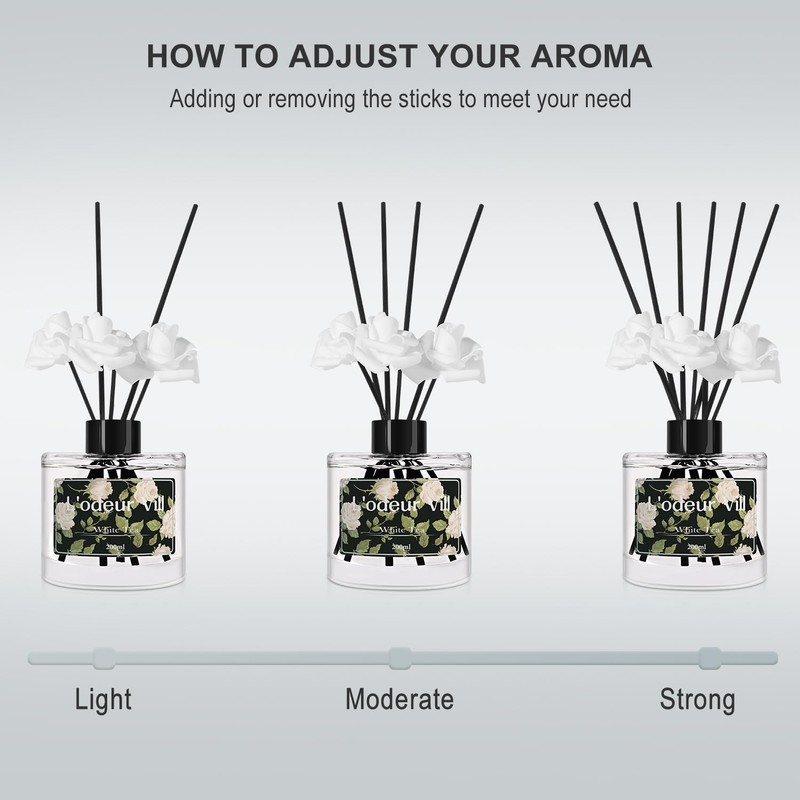 - 【Long Lasting Fragranc】You can choose to add or delete the number of reed sticks and adjust the fragrance to be strong or weak. For the first time, soak the stick in essential oil for 1-2 days. When the fragrance becomes weak, simply turn the reed sticks upside down or replace them with new ones.